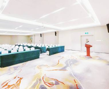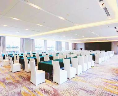 酒店四楼共设面积不同的五个会议室,可分别容纳12-400人的会议室,高科技视频设备一应俱全,