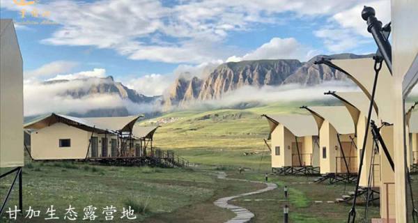 位于甘肃省甘南藏族自治州夏河县甘加草原,平均海拔3000米,为中海油投资建设捐赠予夏河县甘加乡扶贫项目,营地距离夏河县城车程1小时。甘加草原周围群山环绕,是一处典型的高原草地,理想的天然牧场,鲜花盛开,繁花似锦,蓝天,白云,绿草浑然一体。甘加生态露营地地处甘加秘境景区中心位置,远眺白石崖,毗邻八角古城,白石崖寺,白石崖溶洞等景点,营地内帐篷整体为钢结构,采用无毒无害环保材料,有隔热,阻燃,透光,保温等多种功能,配备先进的污水处理系统,高星级酒店床品及客用 品,专属管家服务,营地提供藏餐,草原小火锅,烤全羊等饮食服务,另有骑马,炜桑祈福,藏家体验,篝火晚会等活动。